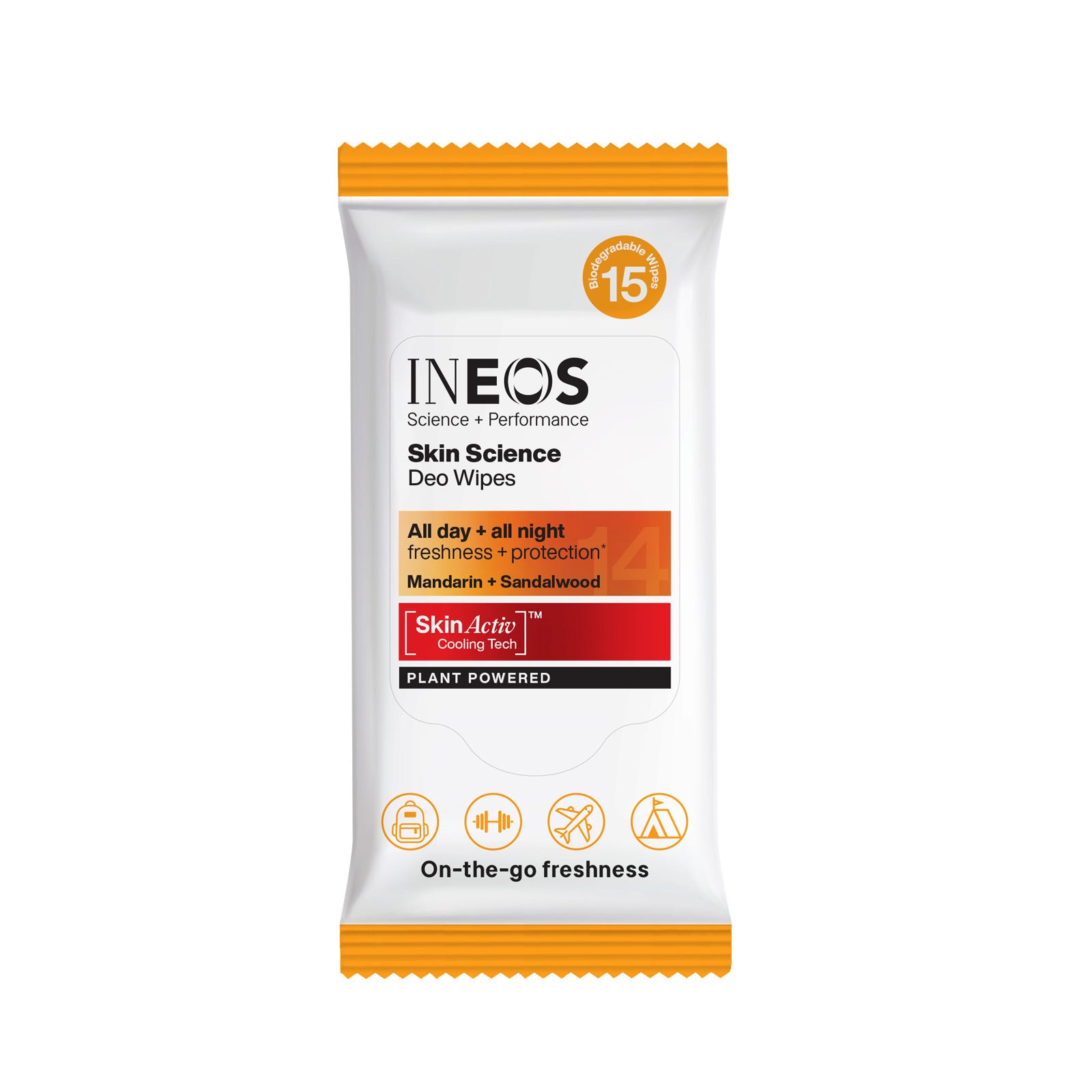 At INEOS, we relentlessly optimise every element of our products using the latest in skin science to deliver results. Our Deo Wipes contain SkinActiv Cooling Techâ„¢, a plant powered fusion that helps keep you cool under pressure, combatting odour for all day + night freshness + protection.