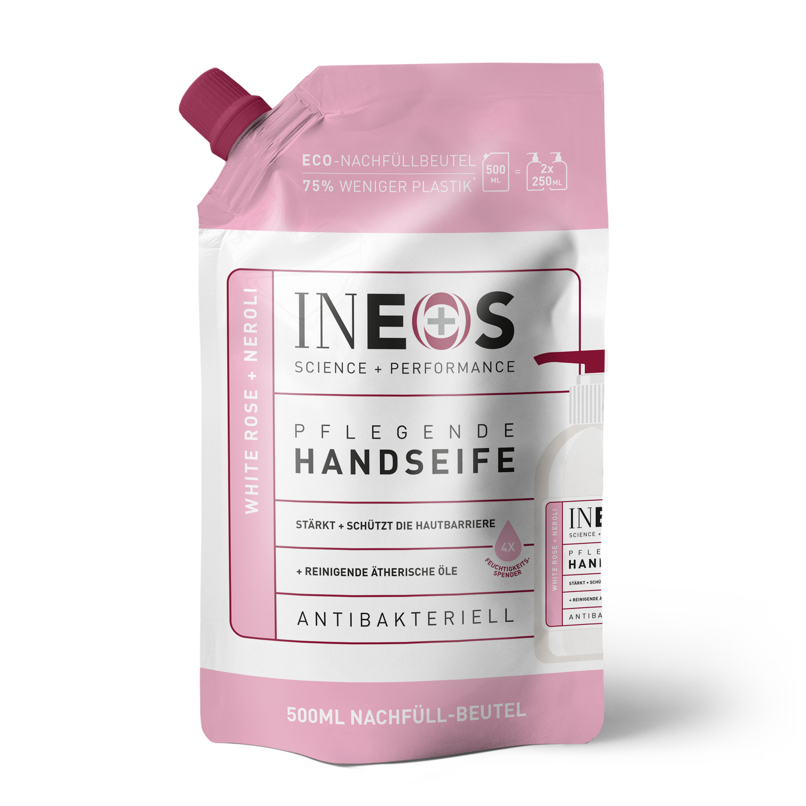 Sie enthält 4 Mal mehr feuchtigkeitsspendende Inhaltsstoffe, die die Haut nachweislich aktiv verbessern. Vor allem steigert sie das Wohlbefinden mit phytonzidhaltigen Düften – aktiven Bestandteilen von Bäumen und anderen Pflanzen mit bakterienhemmender Wirkung, denen antioxidante und das Wohlbefinden steigernde Eigenschaften sowie die Fähigkeit, Stress und Müdigkeit zu verringern, zugeschrieben werden. INEOS: unvergleichlicher Schutz und Pflege.